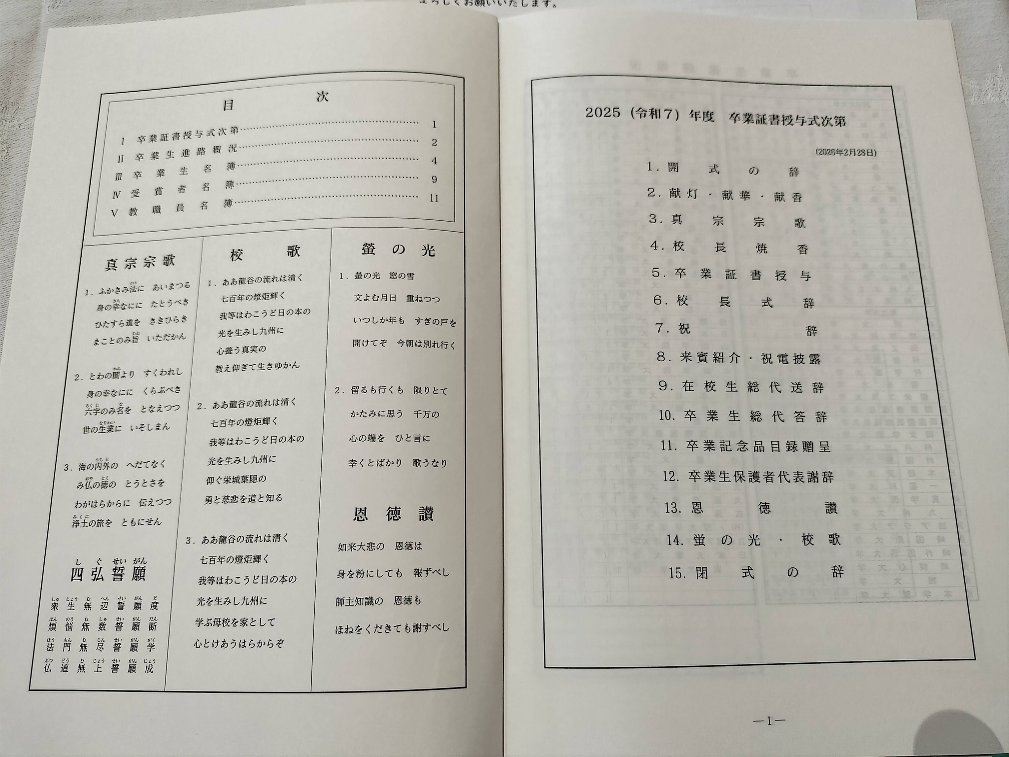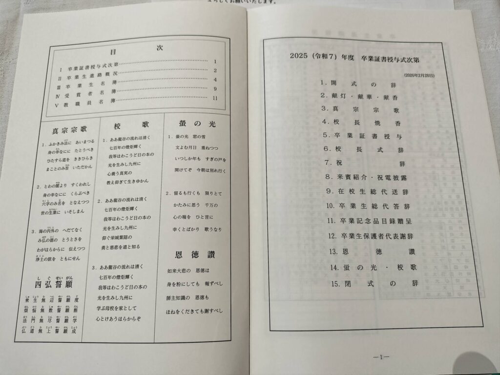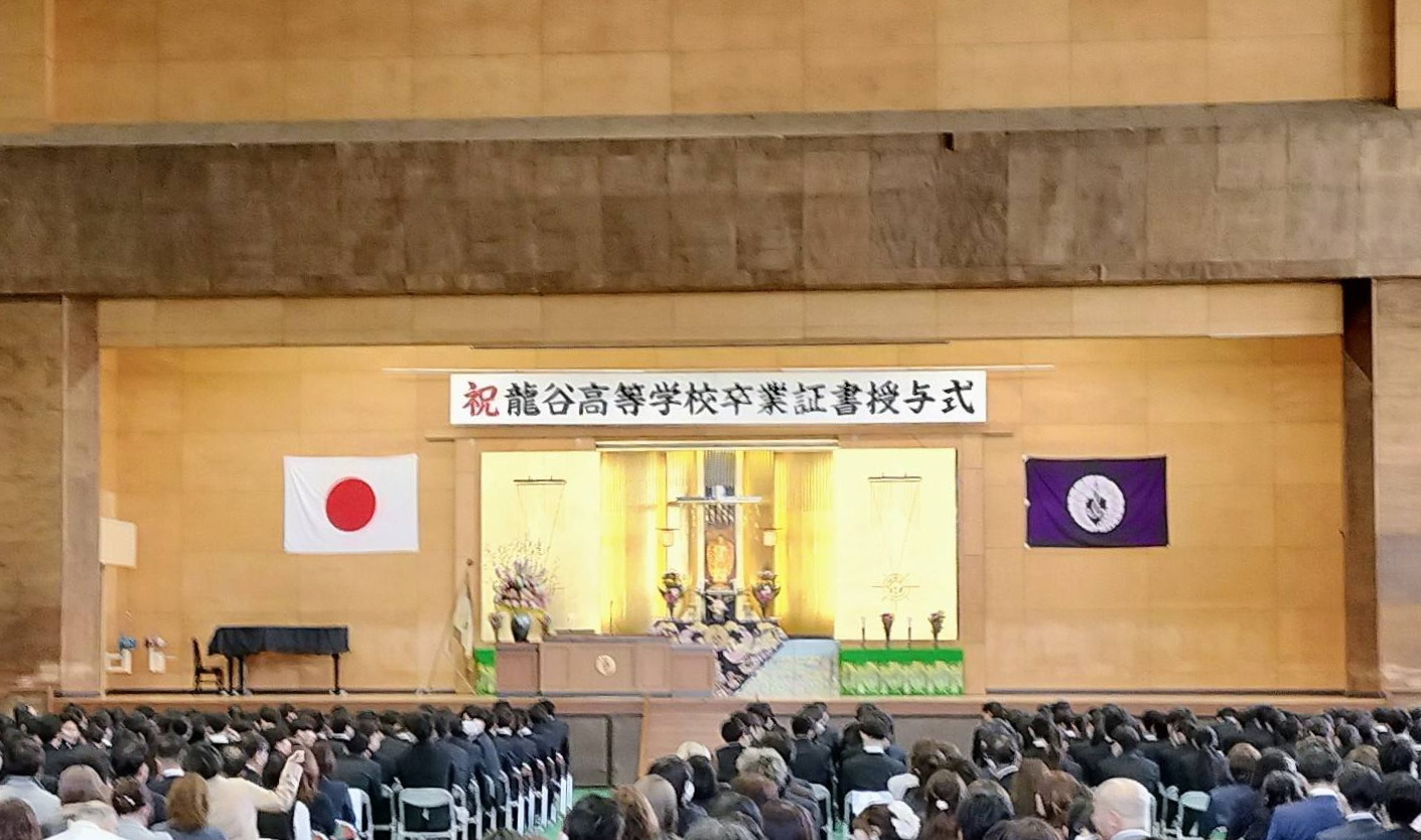 今日は母校、龍谷高校の卒業式でした。毎年ながら荘かに式典が行われました。今年の答辞の中で建学の精神、合掌、感謝、自律、明朗に触られ、昨今の大変な国際情勢の中においても力強く生き抜き平和な社会を希求する旨の内容を言われました。